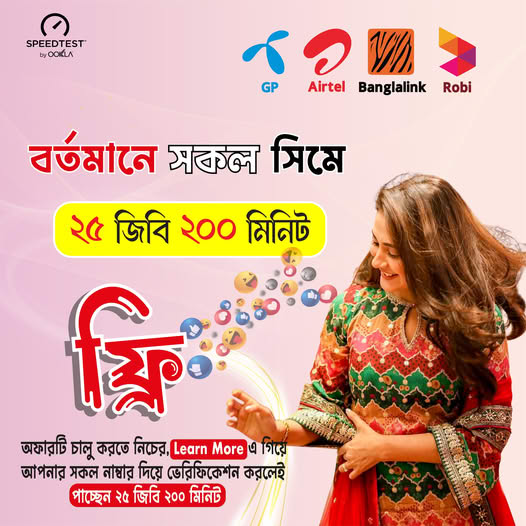 বাংলালিংক ২৫ জিবি ফ্রি ইন্টারনেট